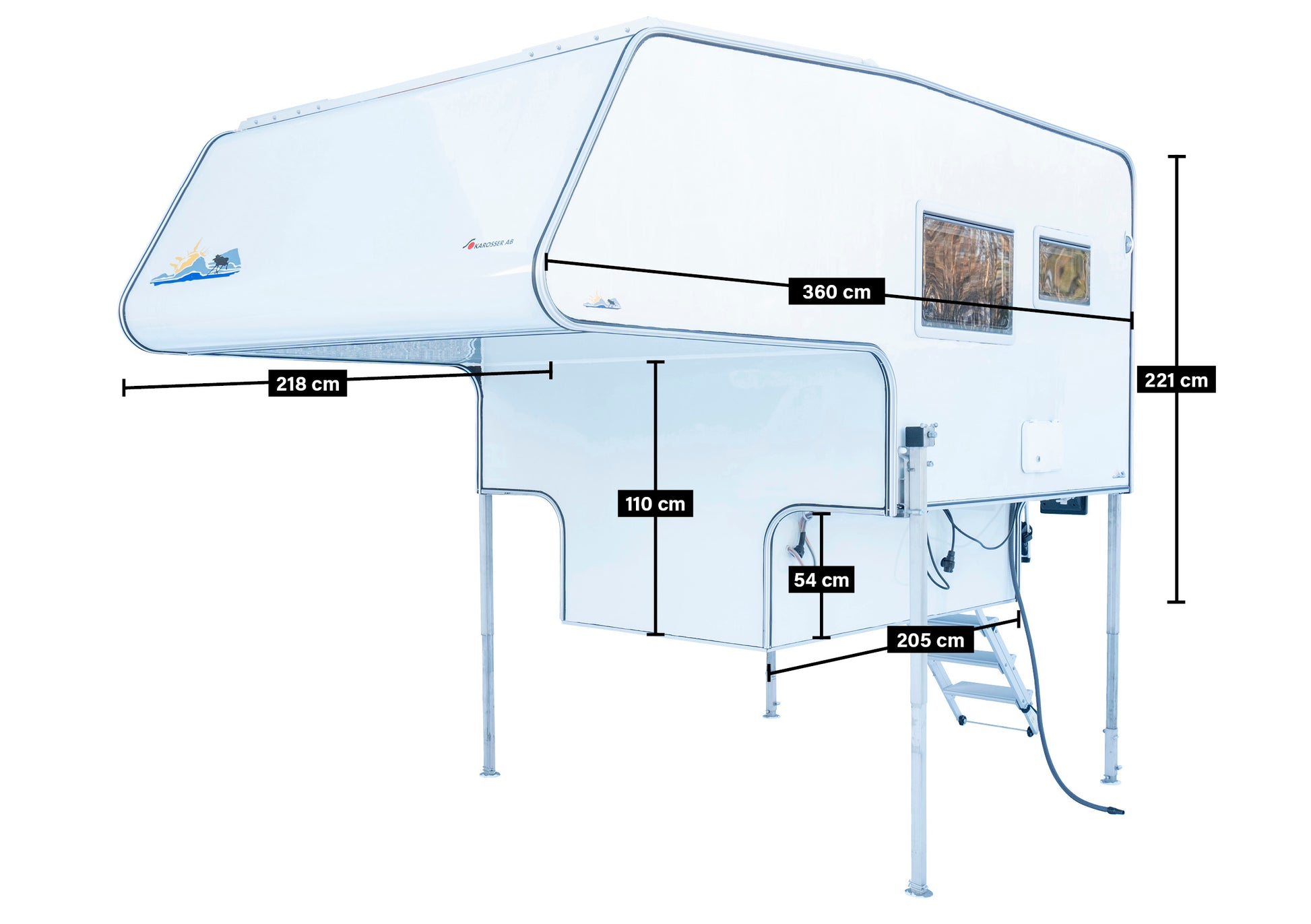 NL CAMP 3 är Northern Lights Campers minsta campermodell, men den har allt ni behöver för en bekväm campingsemester. Den rymliga bodelen har plats för bekväma sängplatser och ett välutrustat kök. Den luftblåsande gassvärmaren värmer effektivt upp utrymmet i campern till den temperatur ni önskar. Den låga vikten och den kompakta designen gör den lätt att manövrera och parkering blir en barnlek.